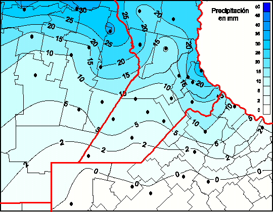 Mapa de precipitación acumulada en las últimas 48 horas.