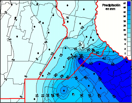 Mapa de precipitación acumulada en las últimas 48 horas.(Desde las 8:00AM hasta las 8:00AM). Se actualiza a las 10:00hs.
