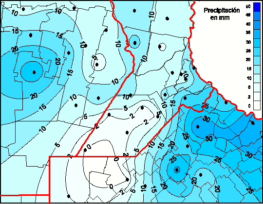 Mapa de precipitación acumulada en las últimas 72 horas.