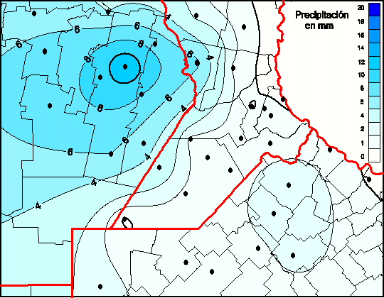 Mapa de precipitación acumulada en las últimas 0 horas.(Desde las 8:00AM hasta las 8:00AM). Se actualiza a las 10:00hs.
