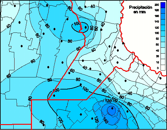 Mapa de precipitación acumulada en las últimas 168 horas.(Desde las 8:00AM hasta las 8:00AM). Se actualiza a las 10:00hs.