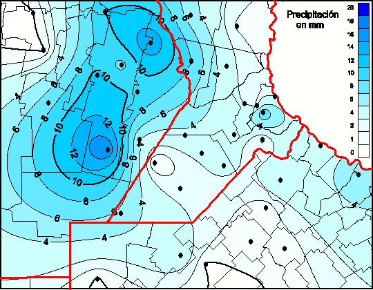 Mapa de precipitación acumulada en las últimas 24 horas.