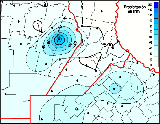 Mapa de precipitación acumulada en las últimas 96 horas.(Desde las 8:00AM hasta las 8:00AM). Se actualiza a las 10:00hs.