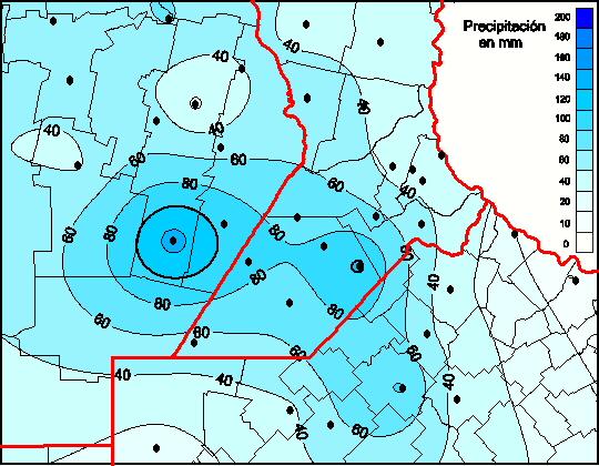 Mapa de precipitación acumulada en las últimas 96 horas.(Desde las 8:00AM hasta las 8:00AM). Se actualiza a las 10:00hs.