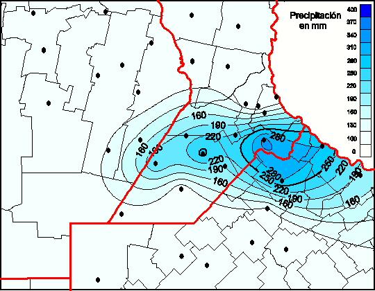 Mapa de precipitación acumulada en las últimas 72 horas.(Desde las 8:00AM hasta las 8:00AM). Se actualiza a las 10:00hs.