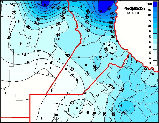 Mapa de precipitación acumulada en las últimas 72 horas.(Desde las 8:00AM hasta las 8:00AM). Se actualiza a las 10:00hs.
