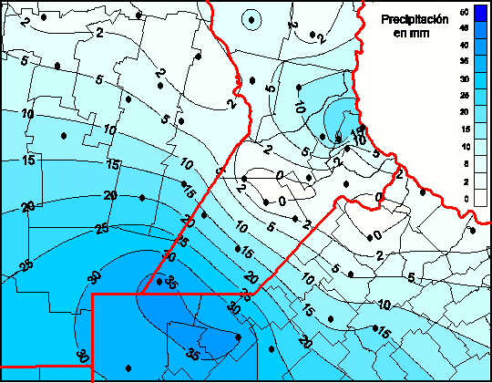 Mapa de precipitación acumulada en las últimas 24 horas.