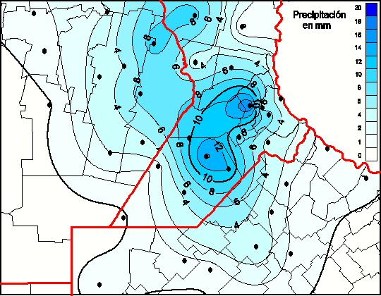Mapa de precipitación acumulada en las últimas 24 horas.
