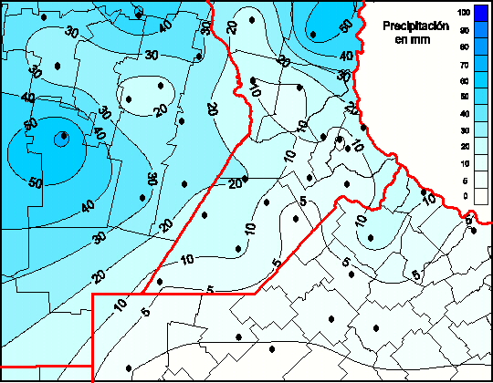 Mapa de precipitación acumulada en las últimas 72 horas.