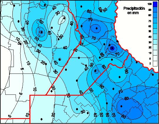 Mapa de precipitación acumulada en las últimas 72 horas.