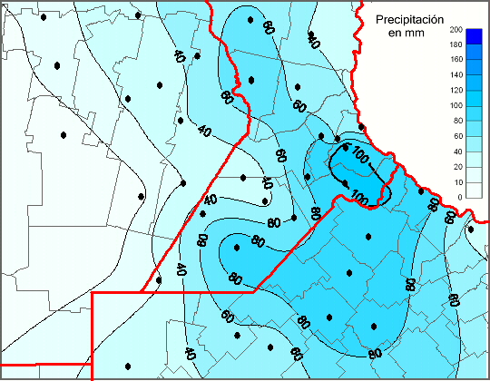 Mapa de precipitación acumulada en las últimas 72 horas.(Desde las 8:00AM hasta las 8:00AM). Se actualiza a las 10:00hs.