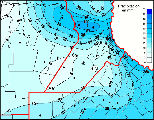 Mapa de precipitación acumulada en las últimas 96 horas.(Desde las 8:00AM hasta las 8:00AM). Se actualiza a las 10:00hs.
