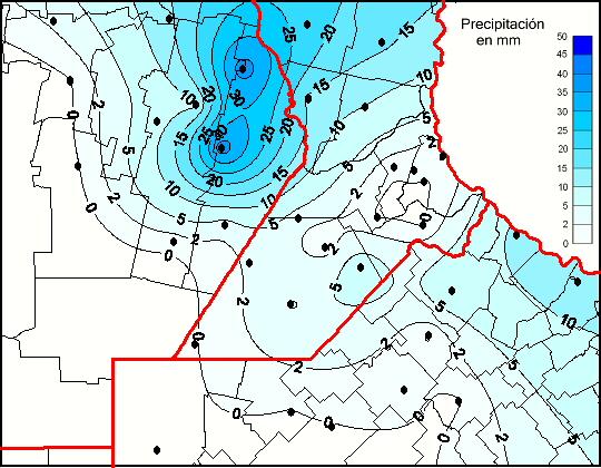 Mapa de precipitación acumulada en las últimas 24 horas.