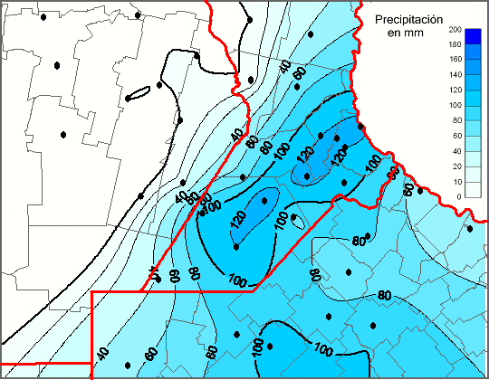 Mapa de precipitación acumulada en las últimas 96 horas.(Desde las 8:00AM hasta las 8:00AM). Se actualiza a las 10:00hs.