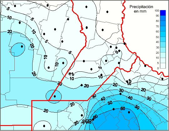 Mapa de precipitación acumulada en las últimas 96 horas.(Desde las 8:00AM hasta las 8:00AM). Se actualiza a las 10:00hs.
