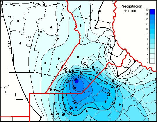 Mapa de precipitación acumulada en las últimas 72 horas.