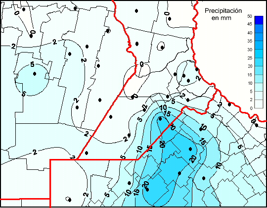 Mapa de precipitación acumulada en las últimas 24 horas.