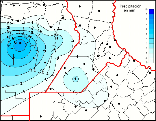 Mapa de precipitación acumulada en las últimas 24 horas.