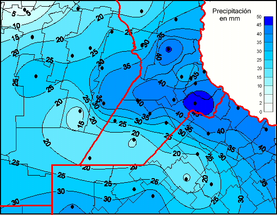 Mapa de precipitación acumulada en las últimas 96 horas.(Desde las 8:00AM hasta las 8:00AM). Se actualiza a las 10:00hs.