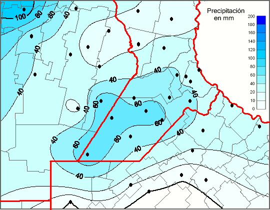 Mapa de precipitación acumulada en las últimas 72 horas.