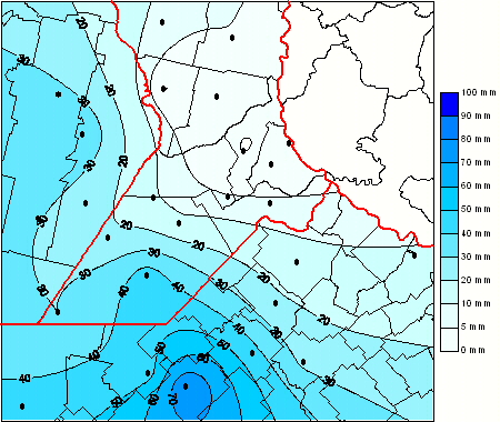 Mapa de precipitación acumulada en las últimas 96 horas.(Desde las 8:00AM hasta las 8:00AM). Se actualiza a las 10:00hs.