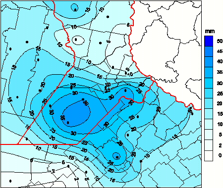 Mapa de precipitación acumulada en las últimas 72 horas.