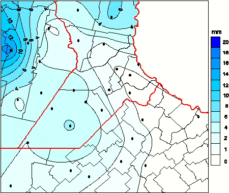 Mapa de precipitación acumulada en las últimas 72 horas.