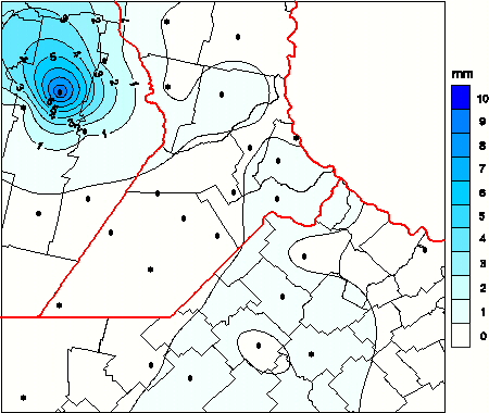 Mapa de precipitación acumulada en las últimas 48 horas.(Desde las 8:00AM hasta las 8:00AM). Se actualiza a las 10:00hs.