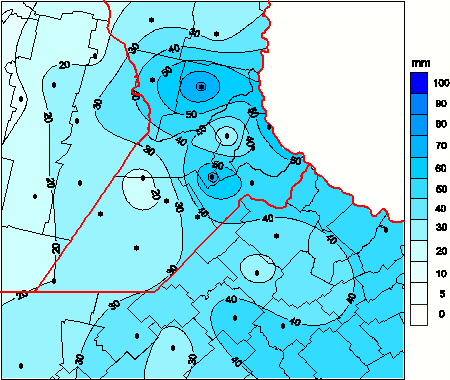 Mapa de precipitación acumulada en las últimas 72 horas.