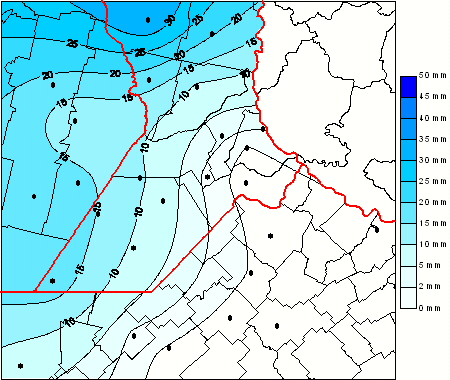 Mapa de precipitación acumulada en las últimas 24 horas.