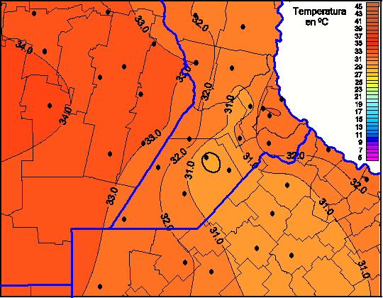 Mapa de temperaturas máximas de las las últimas 72 horas.(Desde las 8:00AM hasta las 8:00AM). Se actualiza a las 10:00hs.