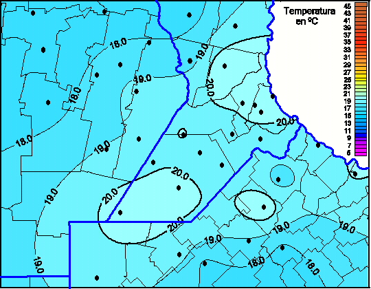 Mapa de temperaturas máximas de las las últimas 0 horas.(Desde las 8:00AM hasta las 8:00AM). Se actualiza a las 10:00hs.