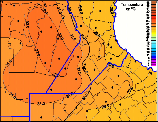 Mapa de temperaturas máximas de las las últimas 24 horas.