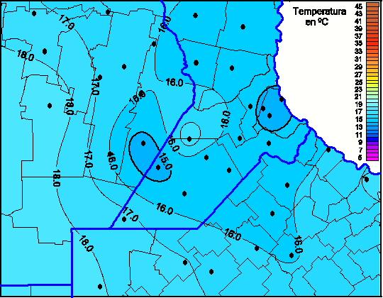 Mapa de temperaturas máximas de las las últimas 72 horas.(Desde las 8:00AM hasta las 8:00AM). Se actualiza a las 10:00hs.
