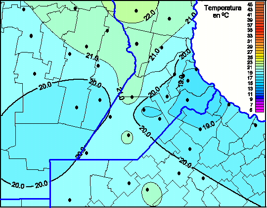 Mapa de temperaturas máximas de las las últimas 72 horas.(Desde las 8:00AM hasta las 8:00AM). Se actualiza a las 10:00hs.