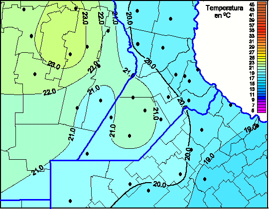 Mapa de temperaturas máximas de las las últimas 72 horas.(Desde las 8:00AM hasta las 8:00AM). Se actualiza a las 10:00hs.