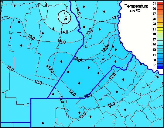 Mapa de temperaturas máximas de las las últimas 72 horas.(Desde las 8:00AM hasta las 8:00AM). Se actualiza a las 10:00hs.