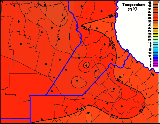 Mapa de temperaturas máximas de las las últimas 96 horas.