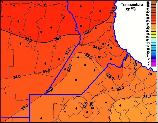 Mapa de temperaturas máximas de las las últimas 24 horas.
