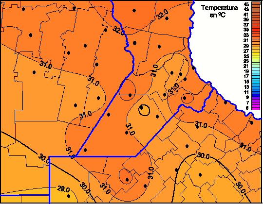 Mapa de temperaturas máximas de las las últimas 24 horas.