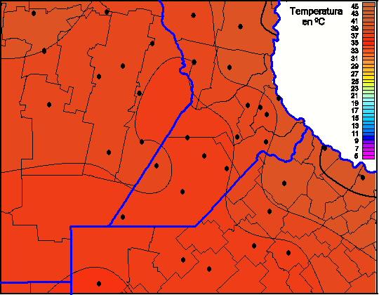 Mapa de temperaturas máximas de las las últimas 72 horas.(Desde las 8:00AM hasta las 8:00AM). Se actualiza a las 10:00hs.