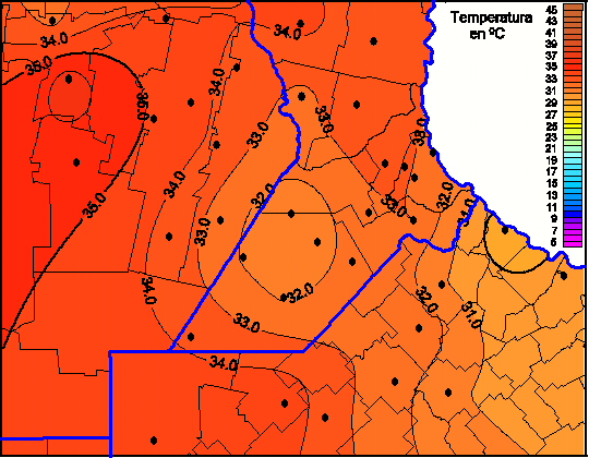 Mapa de temperaturas máximas de las las últimas 24 horas.