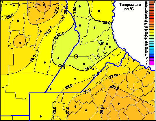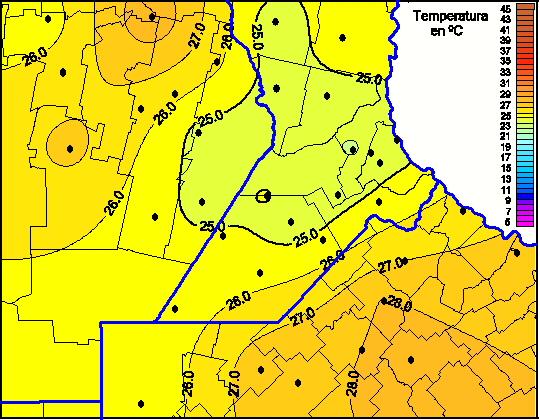Mapa de temperaturas máximas de las las últimas 24 horas.