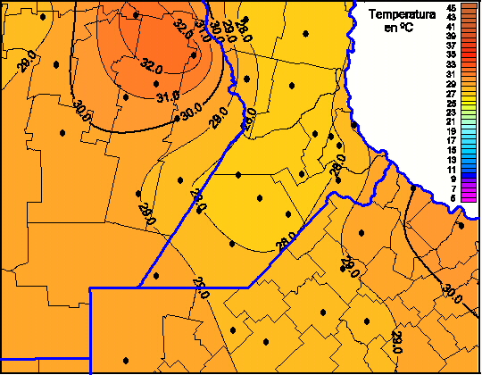 Mapa de temperaturas máximas de las las últimas 24 horas.