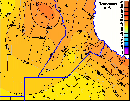 Mapa de temperaturas máximas de las las últimas 24 horas.