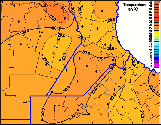 Mapa de temperaturas máximas de las las últimas 24 horas.