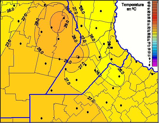 Mapa de temperaturas máximas de las las últimas 96 horas.
