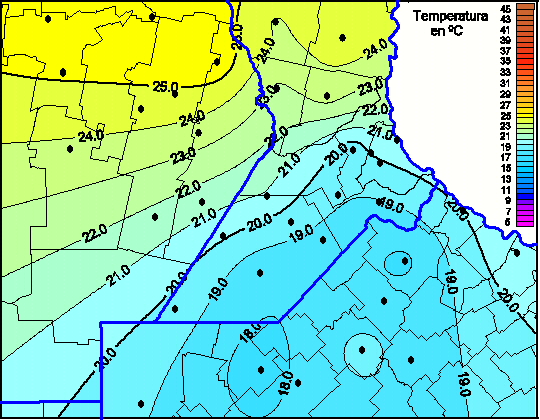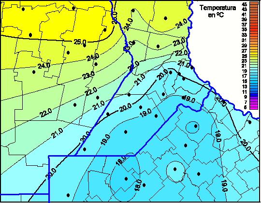 Mapa de temperaturas máximas de las las últimas 72 horas.(Desde las 8:00AM hasta las 8:00AM). Se actualiza a las 10:00hs.