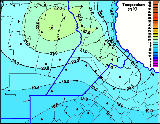 Mapa de temperaturas máximas de las las últimas 96 horas.(Desde las 8:00AM hasta las 8:00AM). Se actualiza a las 10:00hs.