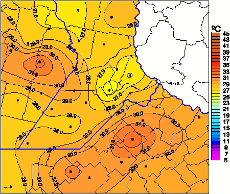 Mapa de temperaturas máximas de las las últimas 24 horas.